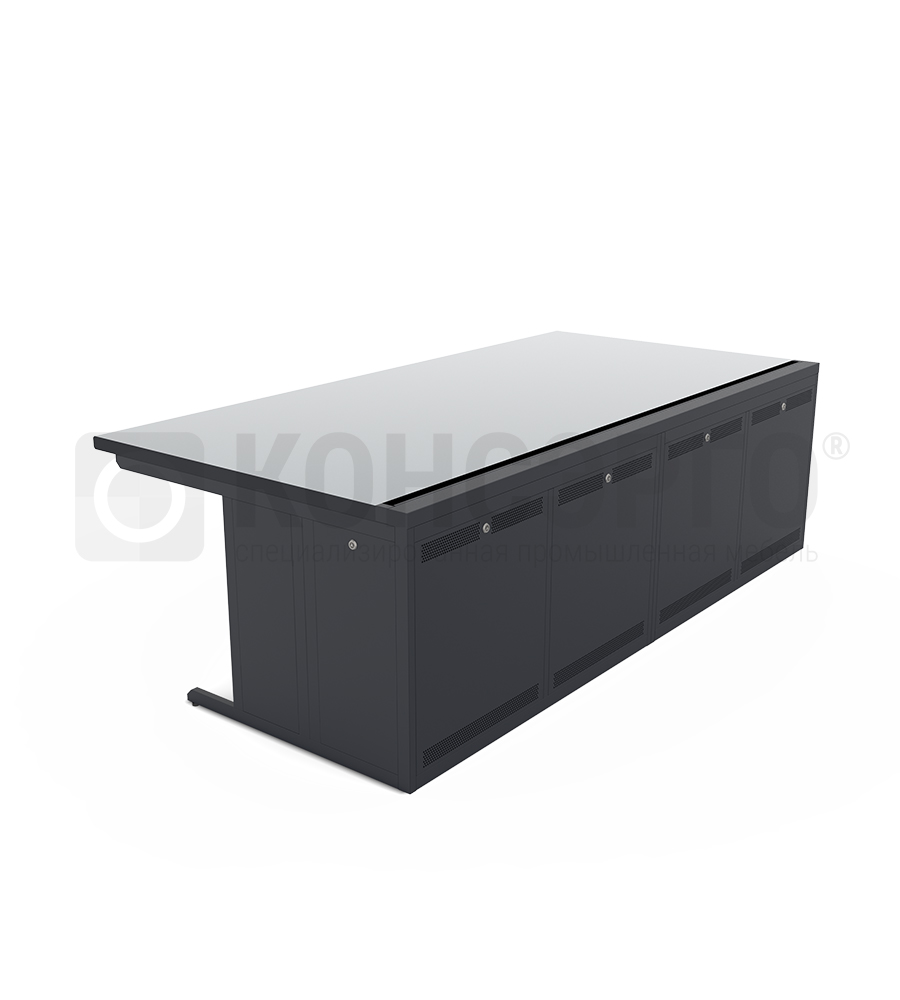 Стол-пульт оператора серии 100 для крепления мониторных держателей на 4 технологических отсека 350мм Ширина 2,4м Глубина 1,2м